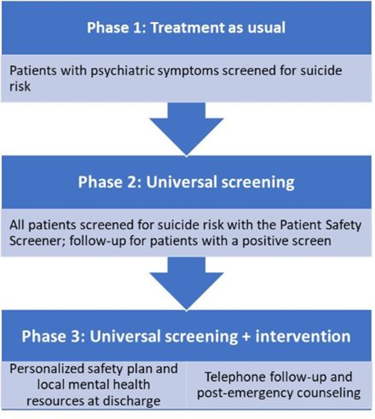 Bunuh diri merupakan penyebab utama kematian di Amerika Serikat, namun ada peluang untuk melakukan intervensi dan menyelamatkan jiwa. Banyak orang yang meninggal karena bunuh diri mendatangi unit IGD beberapa minggu atau bulan sebelumnya, menjadikan unit IGD tempat yang sangat penting untuk menjangkau orang yang berisiko bunuh diri.