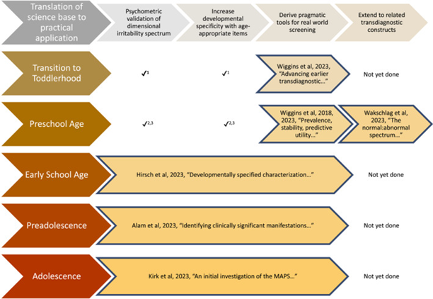 Para peneliti: Lauren S. Wakschlag, Ph.D., Jillian Lee Wiggins, Ph.D., Amy K. Roy, Ph.D., dan rekan-rekannya menjawab tantangan tersebut secara langsung dengan memanfaatkan data dari Multidimensional Assessment of Preschoolers (MAPS) Study dan studi lainnya yang didanai oleh NIMH. Melalui analisis yang rinci, para peneliti tersebut menangkap ekspresi iritabilitas di seluruh tahapan perkembangan melalui alat pengukuran yang relevan secara klinis: the MAPS Temper Loss Scale (MAPS-TL). Hasil penelitian mereka dipublikasi di serangkaian makalah dalam edisi khusus the International Journal of Methods in Psychiatric Research.
